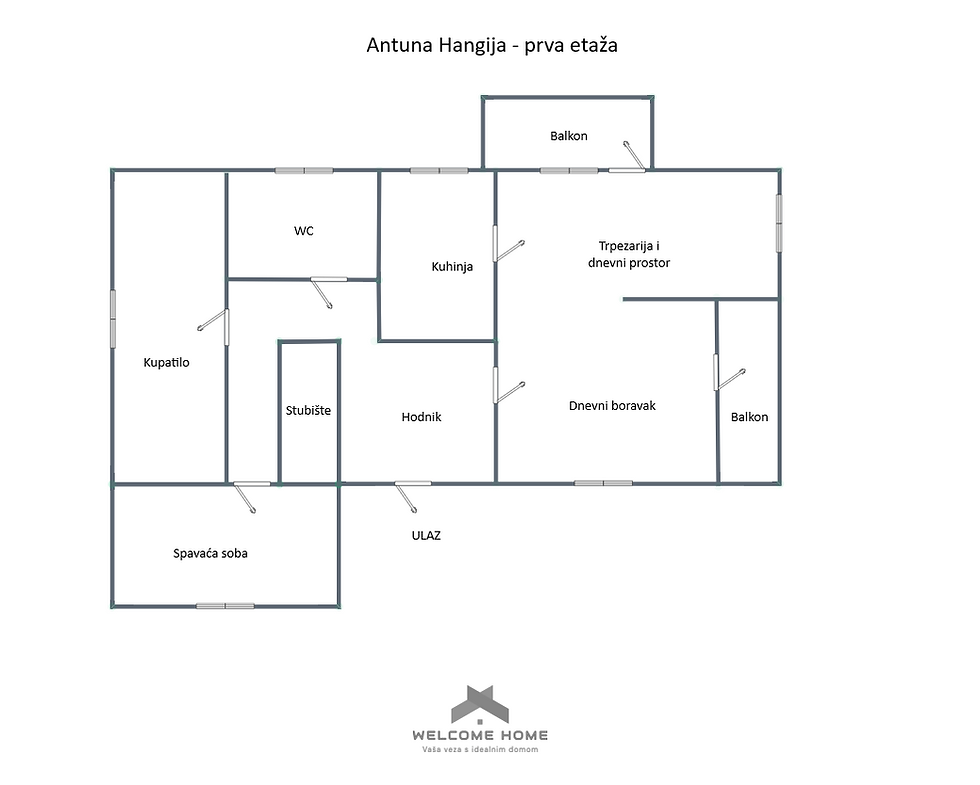 Prva etaža je koncipirana kao prostrana i funkcionalna cjelina, te se sastoji od: